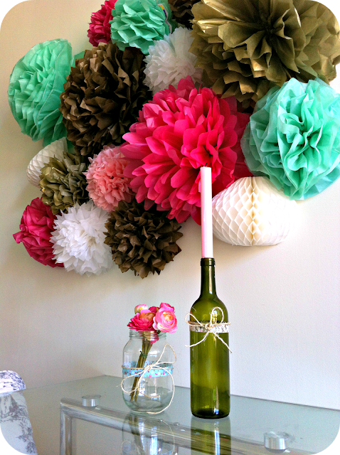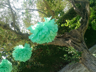 Deco con nuestros pompones en una fiesta en el jardín, modelo color menta exclusivo en nuestra carta de colores
