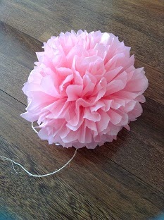 Pompón de color rosa bebé de papel de seda en tamaño S perfecto para colgar con nuestra cuerda de rafia (tipo de acabado en cuerda exclusivo de We Love Parties Bcn)